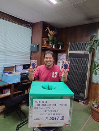 黒い真珠の抽選が行われました。 抽選者は若手組合員です。 黒真珠プレゼント当選者(第二期) 黒真珠ネックレス 山口県 K・Fさん 女性 三次ピオーネ 東京都 T・Nさん 女性 三次ピオーネ 新潟県 M・Kさん 男性 三次ピオーネ 広島県 K・Tさん 女性 三次ピオーネ 広島県 M・Fさん 女性 三次ピオーネ 山口県 K・Iさん 女性 おめでとうございます。 第二期は5387通の応募がありました。 たくさんのご応募(10588通)ありがとうございました。 |